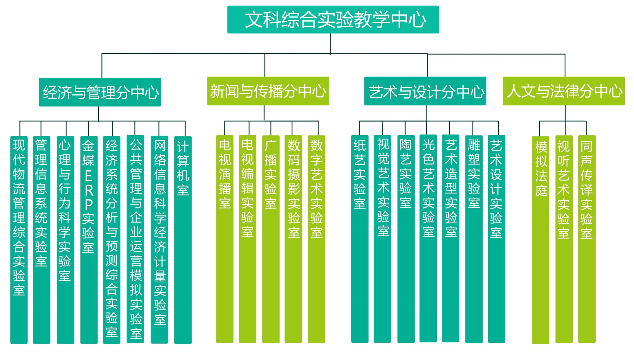 中心主任由学校聘任,实行中心主任负责制,设主任1名,副主任5名。中心下设现代物流管理综合实验室、管理信息系统实验室、经济系统分析与预测综合实验室、公共管理及企业运营模拟实验室、电视演播室、电视编辑实验室、广播实验室、数码摄影实验室、数字艺术实验室、纸艺实验室、视觉艺术实验室、陶艺实验室、艺术造型实验室、光色艺术实验室、同声传译实验室、视听艺术实验室、模拟法庭等。各实验室统一管理、统一制定发展规划,经费分配统筹兼顾,资源共享。