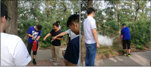 最后,崔老师还现场演示了消防器材的正确使用方法,并与大家展开了积极的讨论与交流。