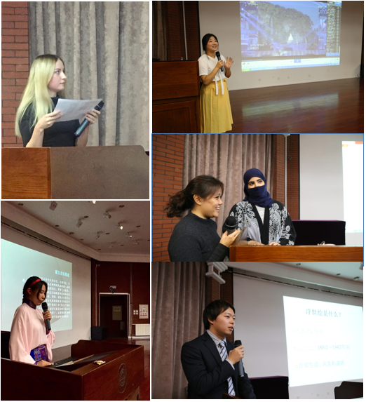 接下来大久保亮同学对日本浮世绘的介绍也给同学们带来全新的艺术体验,他详细梳理了浮世绘的制作流程,在这种精细优良的制作中,全体师生受到了较为丰富的审美内蕴。