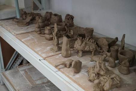 小朋友们将制作完成的陶艺作品放到展板上时,脸上浮现出满意、得意、快意的笑容、甚至有的小朋友们还意犹未尽,“强行”要求带走泥巴回家继续玩。