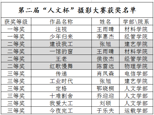 评委们以“公正、公平、公开”原则,从主题思想、构思构图、光影处理等多个角度对匿名处理后的参赛摄影作品进行多轮投票、反复甄选,各种奖项荣耀出炉。其中经管学院李惠杰《少年归来》、材料学院王雨晴的《注视》获得一等奖,其它奖项也都花落有主。评审结束后,雪林老师说“尽管今年的作品比去年数量上少了一些,但仍能看出学生们用独特的视角记录着心中所思所爱,非常具有朝气。”