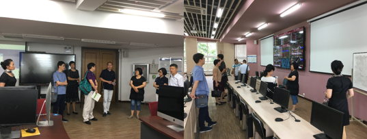 7月17日上午,安徽财经大学工商管理学院院长胡登峰教授、副院长张莹教授等一行11人参观了文科综合实验教学中心,中心副主任刘萍等热情接待了客人。