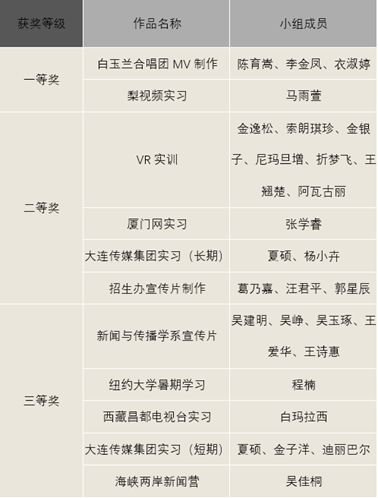 2019年10月8日,大连理工大学新闻与传播学系2018-2019学年小学期实训成果评比表彰活动在一馆205举行。此次评比活动经过成果答辩和评委评审打分等环节,最终白玉兰合唱团MV制作团队和参加梨视频实习项目的同学获得一等奖,VR实训、大连传媒集团实习、纽约大学暑期学习等项目分获二三等奖。人文与社会科学学部副部长、文科综合实验教学中心常务副主任武文颖教授出席活动并为获奖同学颁奖。