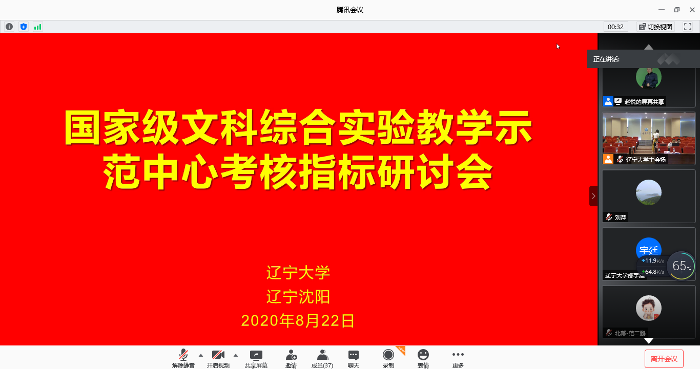 8月22日,由国家级实验教学示范中心联席会文综学科组主办、辽宁大学国家级文科综合实验教学示范中心承办的“国家级文科综合实验教学示范中心评估考核指标研讨会”以网络会议的形式召开。研讨会由北京邮电大学示范中心主任、文综组副组长范姣莲教授主持,国家级实验教学示范中心联席会领导以及国家级实验教学示范中心文综学科组成员单位代表80余人参加,人文与社会科学学部副部长武文颖教授、文科综合实验教学中心副主任刘萍、柴玥以及实验教师代表参加了此次研讨会。