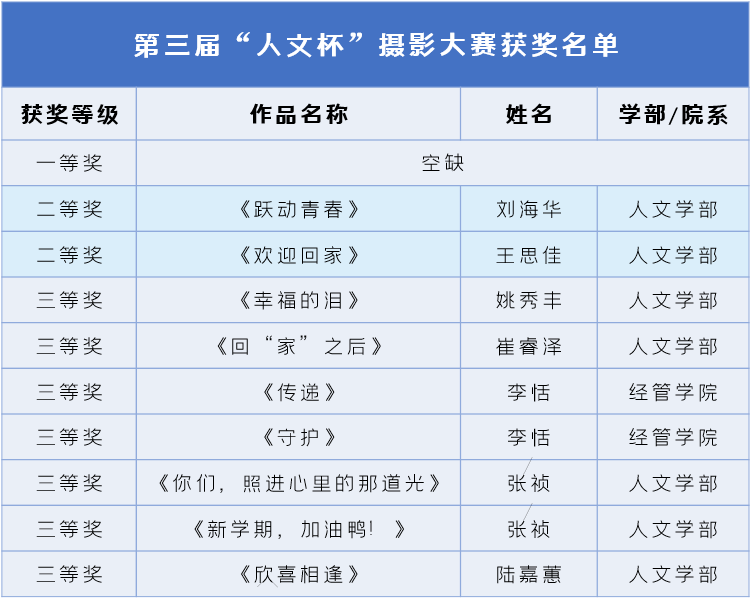 第三届“人文杯”摄影大赛,以“回家”为主题,多侧面反映学生返校后的精神面貌,用青春热情凝聚精神力量的事迹,全面展示当代大学生积极向上的精神风貌,营造向上向善的校园文化氛围。