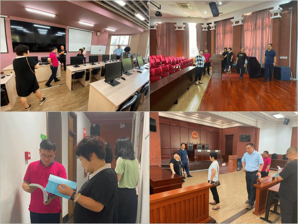 检查过程中,李伦部长针对上学期末安全检查问题的整改情况进行验收,详细检查了安全台账的设置、消防通道杂物清理,对中心所做的安全整改工作表示肯定。同时,李伦部长又针对部分实验室负责人及安全责任人退休等情况,提醒文科中心及时更新相应信息,并建议模拟法庭实验室进行添加会议培训等功能改造,从而提高实验室的利用率。