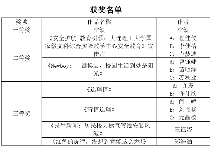 参评同学暂离会议室后,评委老师们根据作品创意、基础质量、工作量、完成度和作品影响力等因素综合考量,经讨论、打分后公布了最终评审结果:一等奖空缺;李佳蓓、曹钰婕等六人获二等奖;许震、闫一鸣等七人获三等奖。