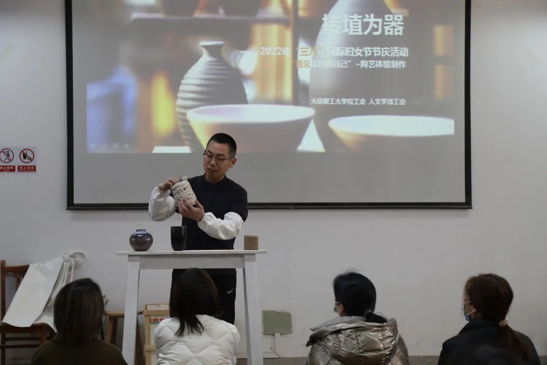 校工会主席屈丽红首先代表校工会对参加活动的女教工表示欢迎并送上节日的问候。她说人文学部工会一直以来充分发挥了联系教职工的桥梁和纽带作用,注重教职工精神家园的建设,丰富文化内涵。陶艺体验活动一直是人文学部工会的特色品牌活动,深受广大教职工的欢迎和喜爱,丰富了教职工的业余生活,希望大家在活动中一同体验陶艺的魅力,感悟工匠精神,锻炼耐心、发挥创意、陶冶情操、增进交流。