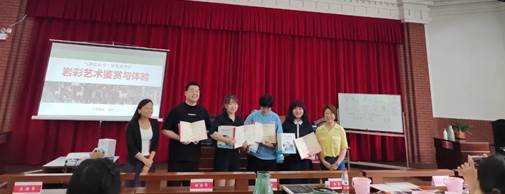 2023年6月11日下午,由大连理工大学MPA教育中心主办题为“气韵绘东方·妙笔着华彩”岩彩艺术鉴赏体验活动暨2022-2023学年公共管理硕士(MPA)专业学位评优颁奖在文科中心A302举行。MPA教育中心专职副主任陈双老师、艺术教育中心副主任刘丹老师、优秀班委及优秀学生代表参加活动。