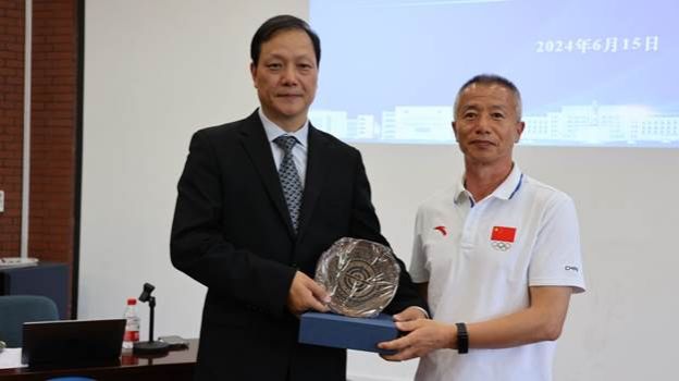 体育与健康学院党委书记刘立清教授为李书东博士赠送了纪念牌,感谢其对我校太极拳研究工作的大力支持。