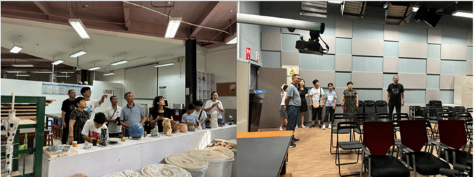 来访教师们重点参观了展厅、陶艺创作实验室、虚拟演播室、公共管理及企业运营模拟实验室、视听艺术实验室等。在参观过程中,武文颖副院长详细地介绍了文科综合实验体系搭建、实验课程安排、实验室管理机制等内容,并就实验室开放共享、实验室运行保障等问题进行了深入交流,来访教师们对文科综合实验教学中心在理工科学生文化素质培养、提供多样化社会服务发挥辐射作用等方面的经验成果给予了充分的肯定,表示通过资源的开放共享,各方可以更好地实现资源互补与优势互享,对提高教学质量和科研水平大有裨益。另外,文科实验教学不仅丰富了教学形式,也大大提升了学生的综合素质和实践能力,为培养具有创新精神和实践能力的人才提供了重要支持。