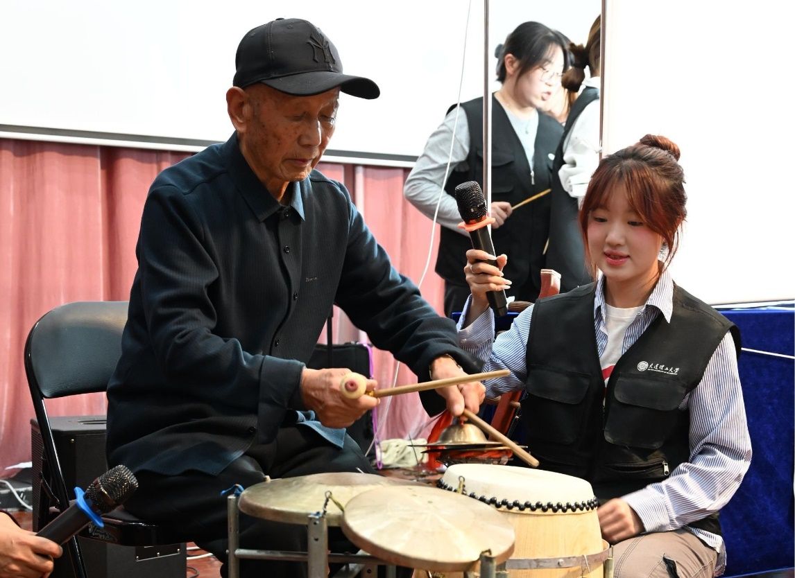 辽南皮影作为中国皮影的重要支系,起源于明末清初,流传于辽宁省盖州地区的岫岩、瓦房店、庄河等地。辽南皮影戏以其独特的造型工艺及原汁原味的辽南唱腔,成为中华优秀传统文化中的珍贵瑰宝,2008年入选国家级非物质文化遗产名录。活动中,彭凌玲以经典剧目《盘丝洞》为例,从专业角度对辽南皮影的历史源流、制作工艺与审美特征进行了深入解读。鄂文武则现场展示了一人同时操持大锣、手锣、钹、板、堂鼓的复合演奏技艺,生动展现了辽南皮影戏独特的艺术魅力。