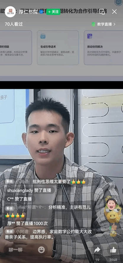 本次活动线上线下联动,通过视频号全程同步直播,吸引了线上观众的广泛关注和热烈讨论。直播过程中,线上观众积极参与互动,评论区留言刷屏不断,围绕“如何引导孩子辨别网络信息”“家庭数字公约如何落地”等话题展开热烈讨论。不少家长也实时分享自己的育儿困惑与实践经验,形成了跨屏共振、多方联动的共学氛围。观众的广泛关注和热烈讨论,不仅体现了社会对“数字素养教育”日益增长的需求,也反映出家长在媒介化社会中的普遍焦虑与积极求变的心态。有观众留言表示:“虽然没能到现场,但在家里和孩子一起看直播,本身就是一次‘共学’实践。”还有教育工作者建议,未来可以定期举办此类主题的线上沙龙或工作坊,构建一个持续学习、互相支持的家长社群。