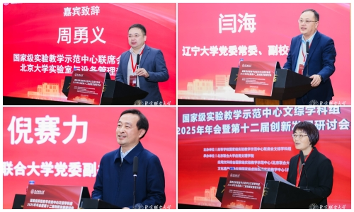 大会开幕式由北京联合大学应用文理学院院长张景秋教授主持。国家级实验教学示范中心联席会副秘书长、北京大学实验室与设备管理部副部长周勇义,国家级实验教学示范中心文综学科组组长单位、辽宁大学副校长闫海教授,北京联合大学党委副书记倪赛力教授出席会议并致辞。三位嘉宾在致辞中表示,本届年会在新文科建设和数智化教学加速发展的背景下举行,具有重要的交流价值。他们指出,文科实验教学在一流本科建设和人才培养改革中作用日益凸显,特别是在人工智能和虚拟仿真技术广泛应用的当下,更需要不断更新理念、完善体系,期待以本次会议为交流平台,汇聚各校经验及真知灼见,共同助力高校文科实验教学质量提升。